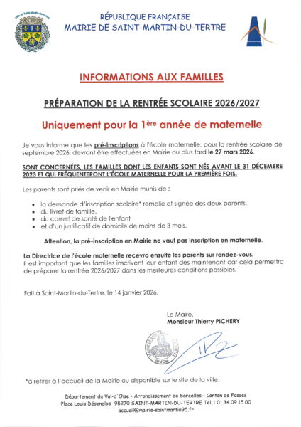 rentrée scolaire 2026-2027 20 janvier 2026 Catégorie : La Mairie Partager cet article Précédent : Recensement de la population 2026